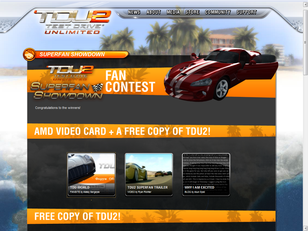 Ну и как тот, кто создавал этот сайт, я получу все призы, однако с новой видеокартой от AMD и лицензионной версией TDU2 я смогу быть с вами в игре. Спасибо всем!